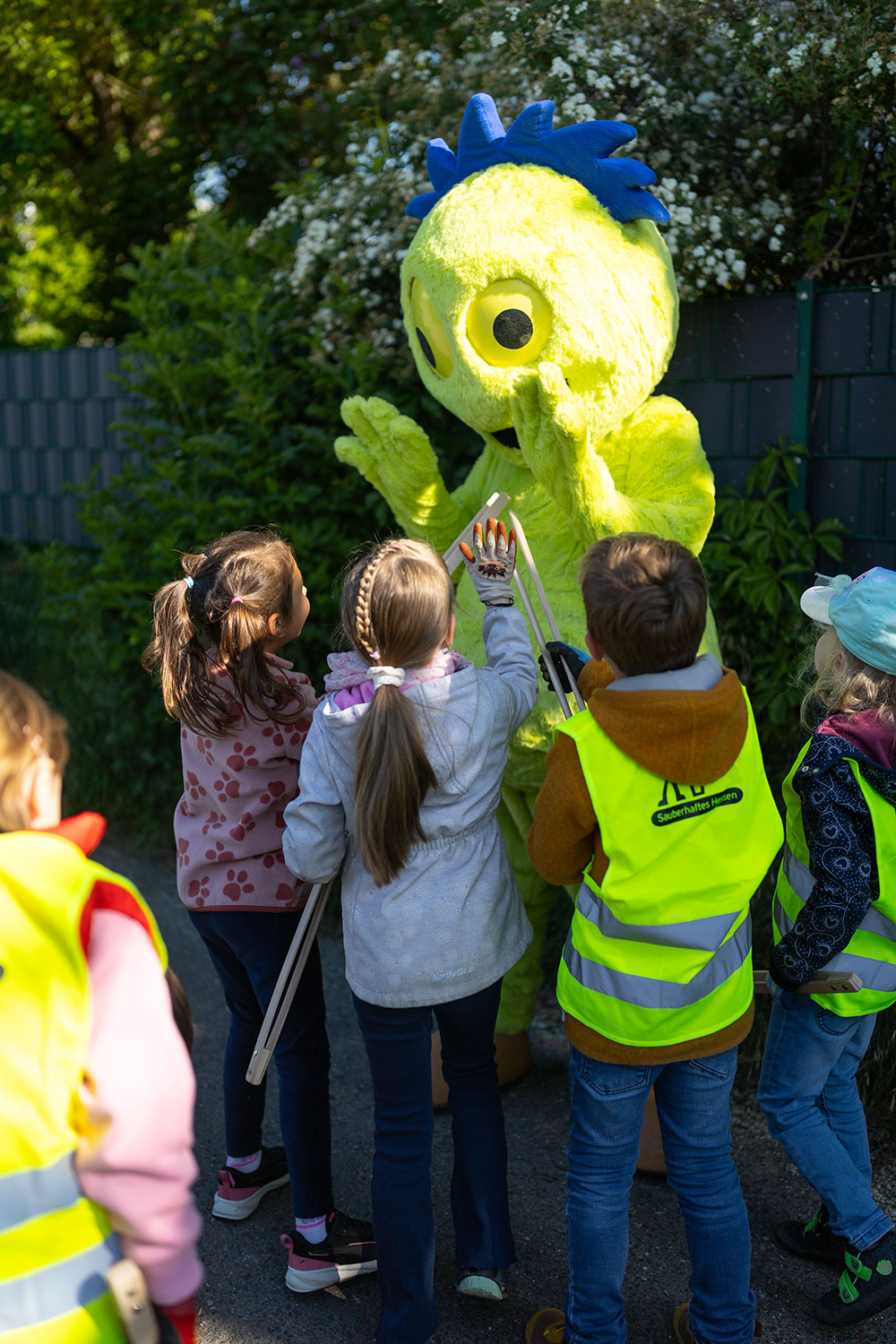 Kinder mit Maskottchen Müllmo